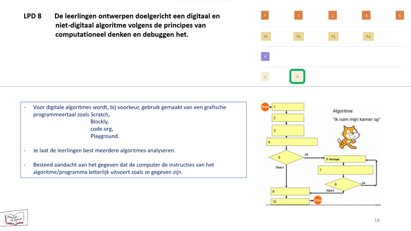 LPD 8 De leerlingen ontwerpen doelgericht een digitaal en niet-digitaal algoritme volgens de principes van computationeel denken en debuggen het.